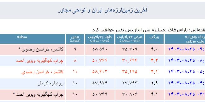 در پی زلزله امروز کوهسرخ جلسه فوقالعاده تشکیل داد/تمامی مرخصیها لغو شد معاون فرماندار کوهسرخ گفت: در پی زمینلرزههای مجدد صبح امروز در حوالی کاشمر که در این شهرستان هم احساس شد بلافاصله جلسه فوقالعاده ستاد پیشگیری، مدیریت و فرماندهی عملیات پاسخ به بحران کوهسرخ در محل فرمانداری این شهرستان …